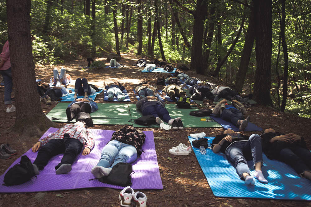 전문가와 함께 직접 숲길을 걸으면서 청량한 호흡을 느낄수도 있고, 깊게 명상에 빠져 가만히 자신을 관조하며 다독이는 시간을 가질 수 도 있습니다.